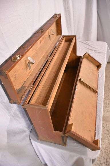 Vintage Wooden Folding Tool Box With Metal Veneer 13024 441 R H Lee Co Auctioneers